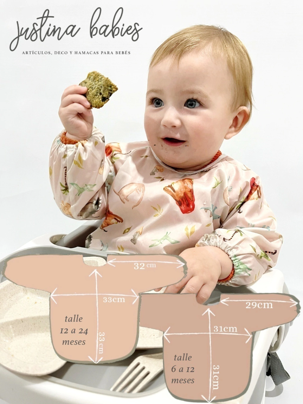 Es ideal para los momentos de las comidas, pintar con temperas, jugar y poder ensuciarse, protegiendo la ropa de manchas.